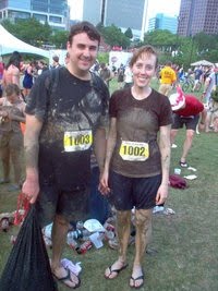 And when she is not running marathoms, she is not above indulging in other types of running ... for instance the "Mud Run" in Richmond in May (see photo of a mud-splattered Meredith with fiance Kevin).